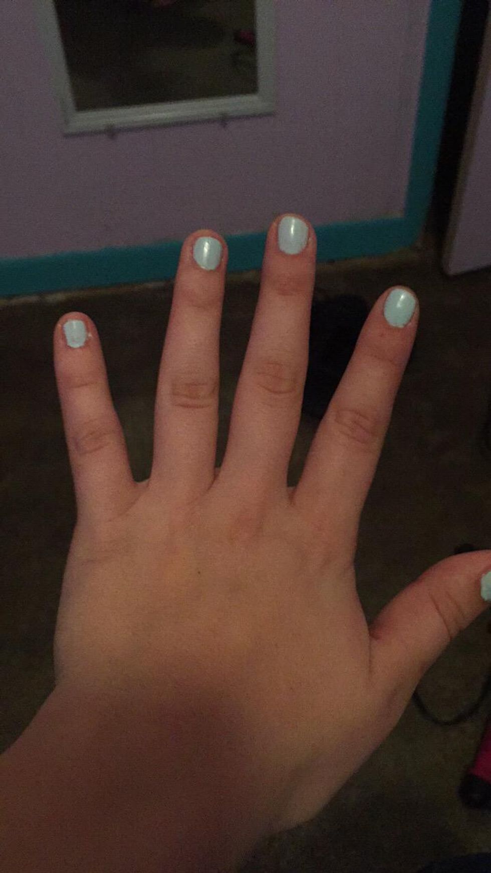 Start painting either your pinky or thumbnail (whichever) and paint each nail with 1 thin coat. Concentrate on painting the actual nail. Brush from where the cuticle starts to the top of your nail.
