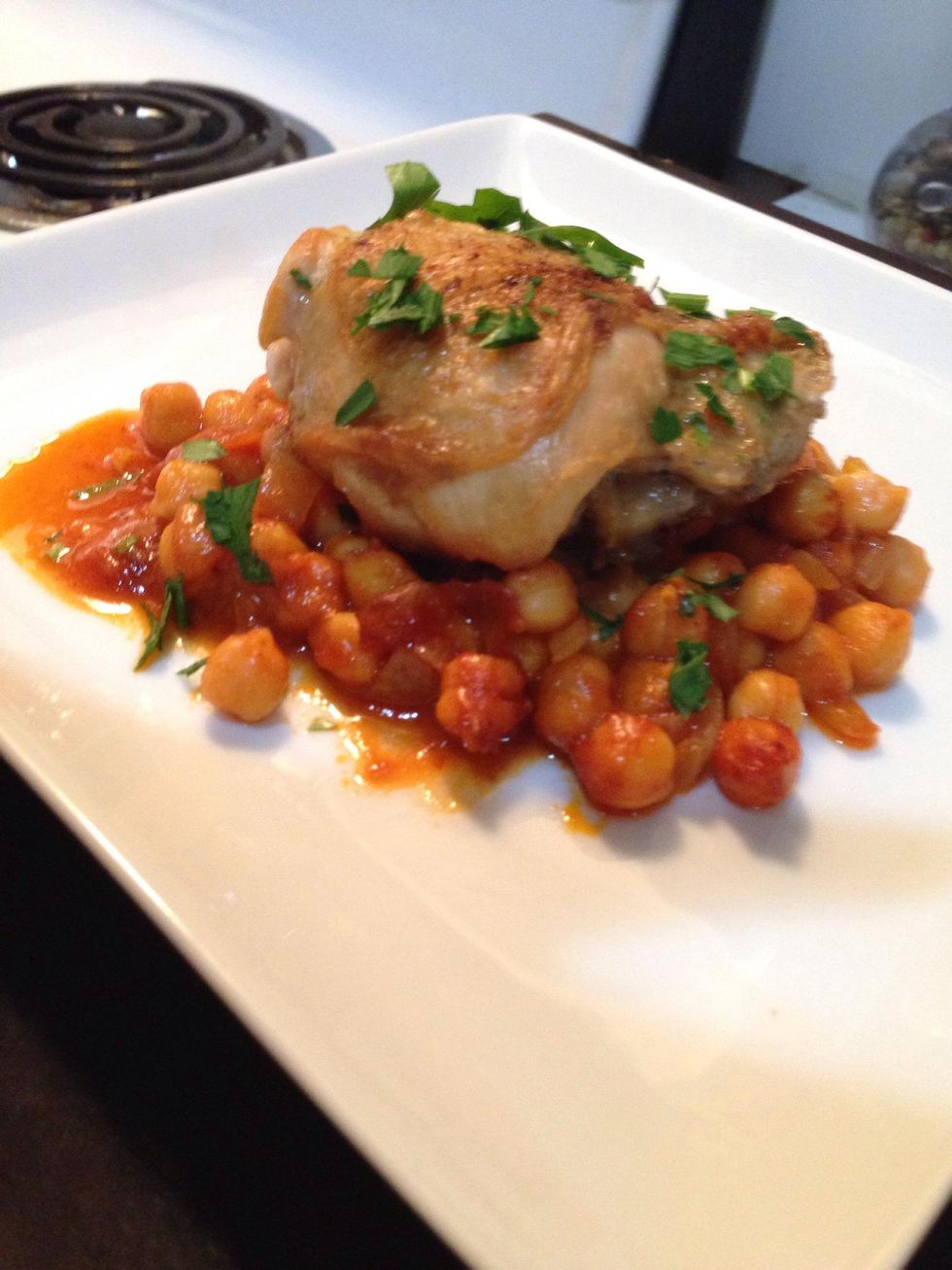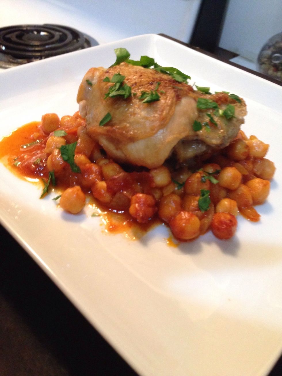 Pan Fried Chicken With Harissa and Garbanzo Beans