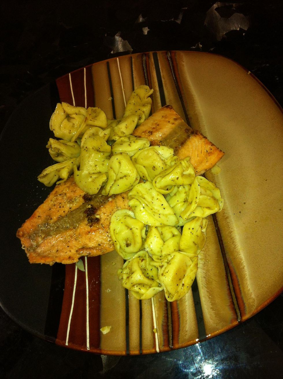 I didn't take pictures of my pesto tortellini process, but it was very simply done. I Boiled tortellini and added pesto I found in my local supermarket.
