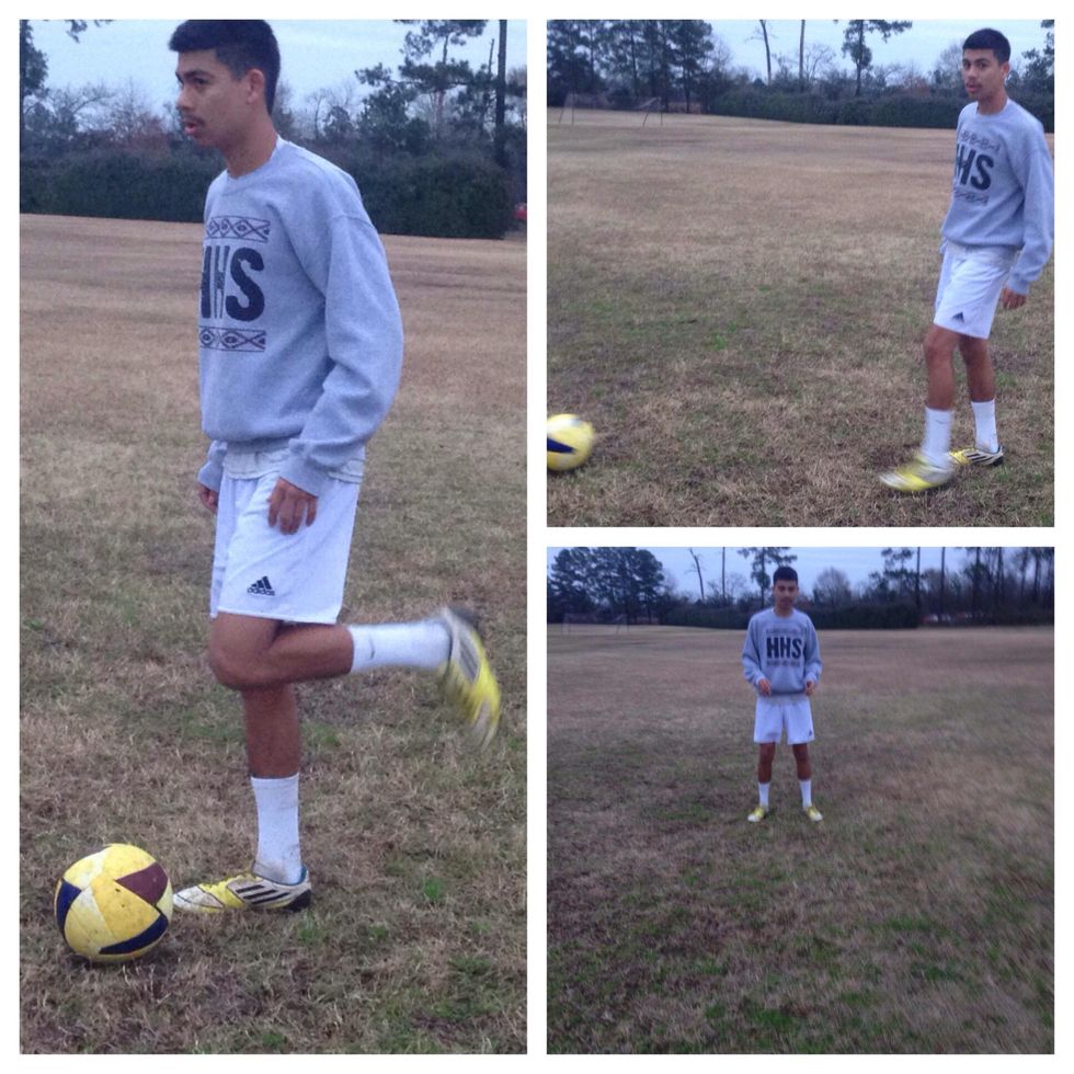 Then swing your foot back down causing you to make contact with the ball. Make sure to hit the ball with the Inside of Your foot.