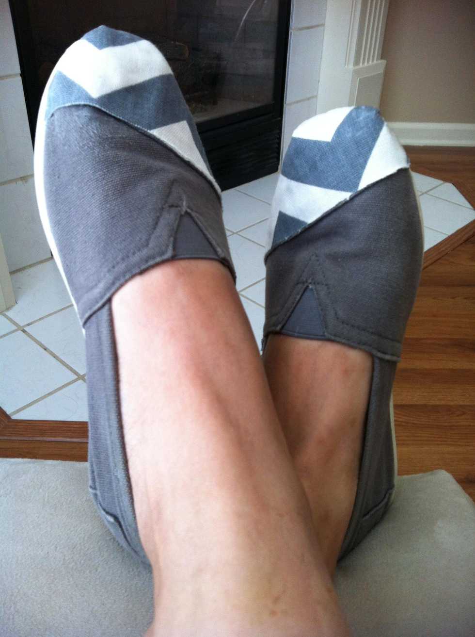 Gray chevron print fabric. Left shoe is the top piece. Right shoe is bottom piece.