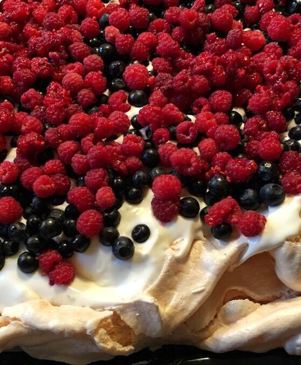 This is the finished meringue. If you prefer you can buy ready made meringue but the homemade is so much better! We did ours on 8 egg whites to a company of 8 adults & 3 kids.