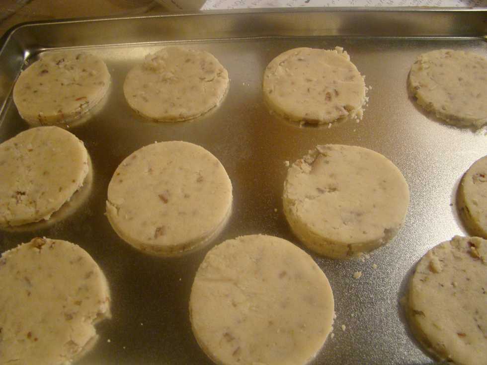 Roll the dough out best you can and cut with a cookie cutter and place on cookie sheet.