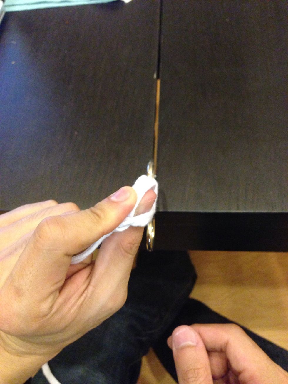 Pull the remaining free suture through the loop. Note that the knot is "flat". If it doesn't lie flat, you probably started this tie with the index finger while holding the string on "bottom".