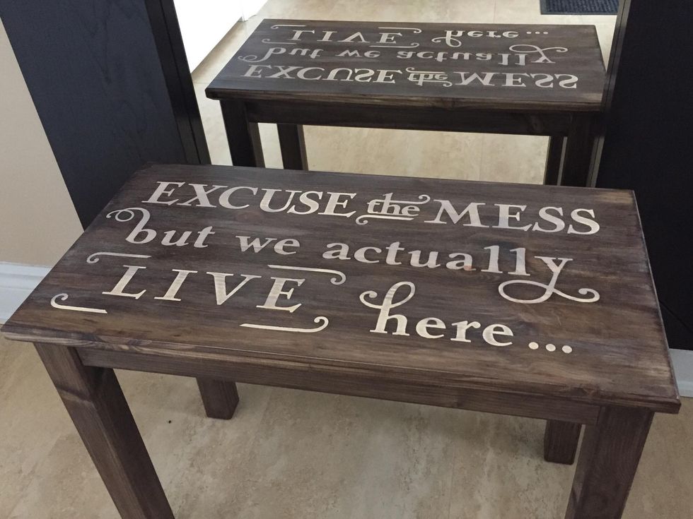 Choose a great quote and "write" it on the wood surface with sticky vinyl letters.