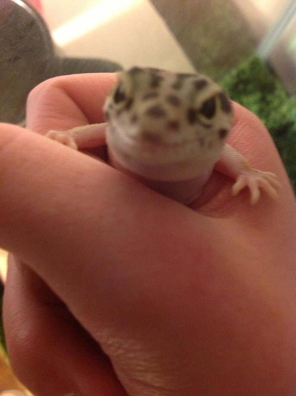 Le wild gecko....Place hand like this over gecko.Hold stomach of gecko between thumb a nod ring finger.Roxy thanks u for reading!
