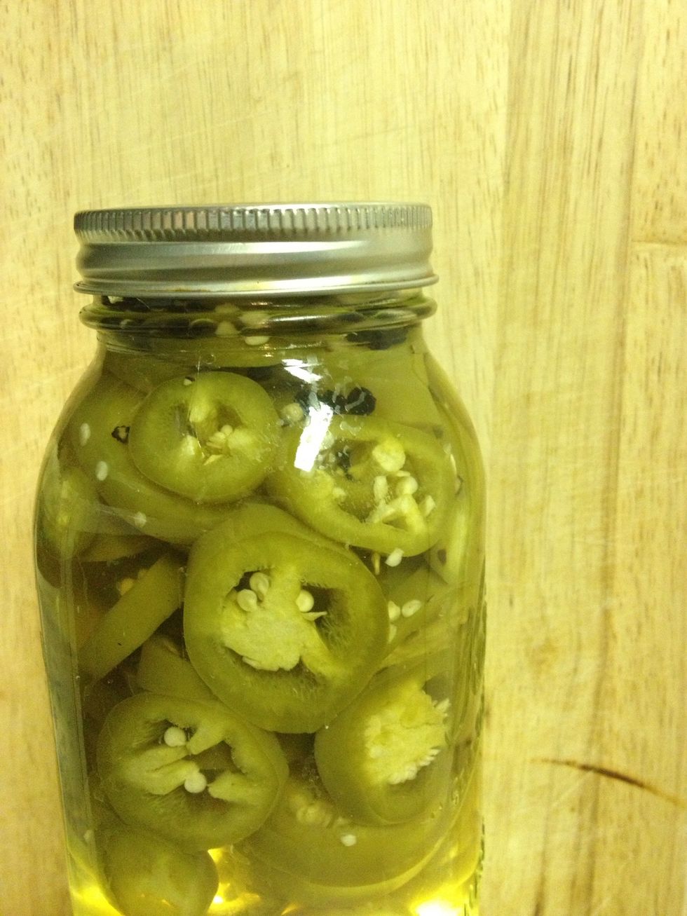 Fill jar with mixture making sure all jalepenos are covered. Seal and shake to distribute flavors.