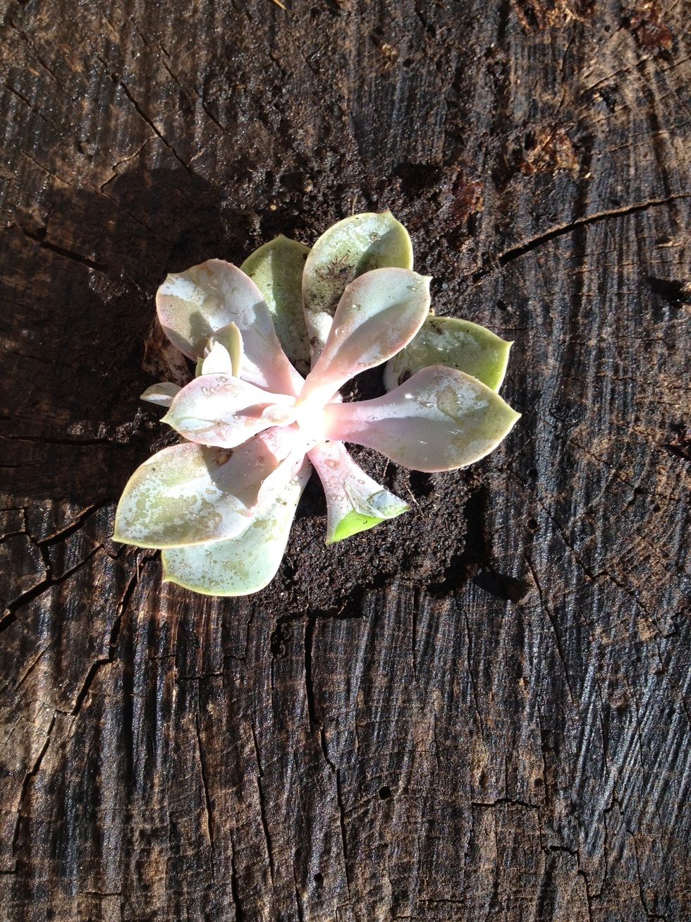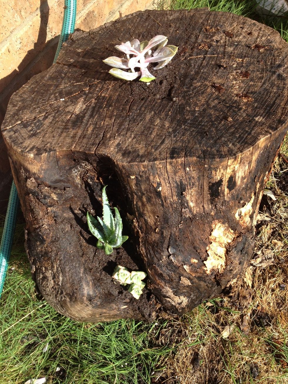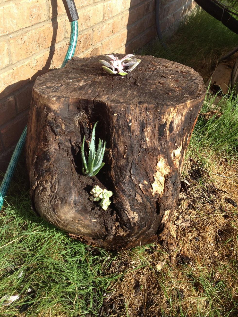 Spray off your tree stump. Clean out the holes where you'd like to plant the plants.