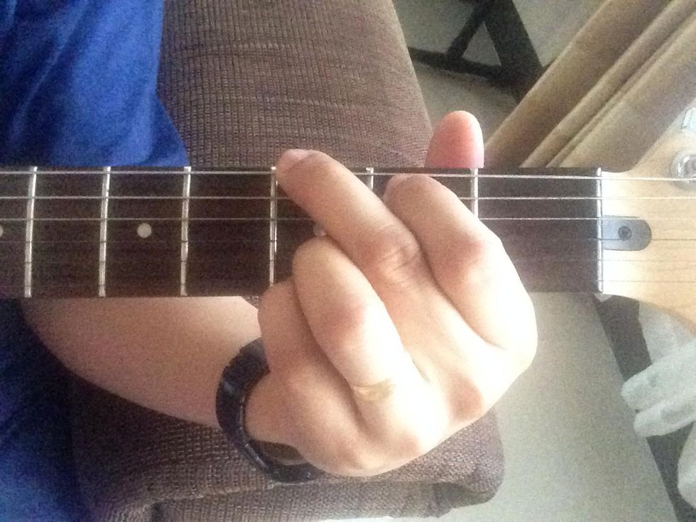 Put the index finger to the 2nd fret of the 5th string, the string below where the middle finger is located