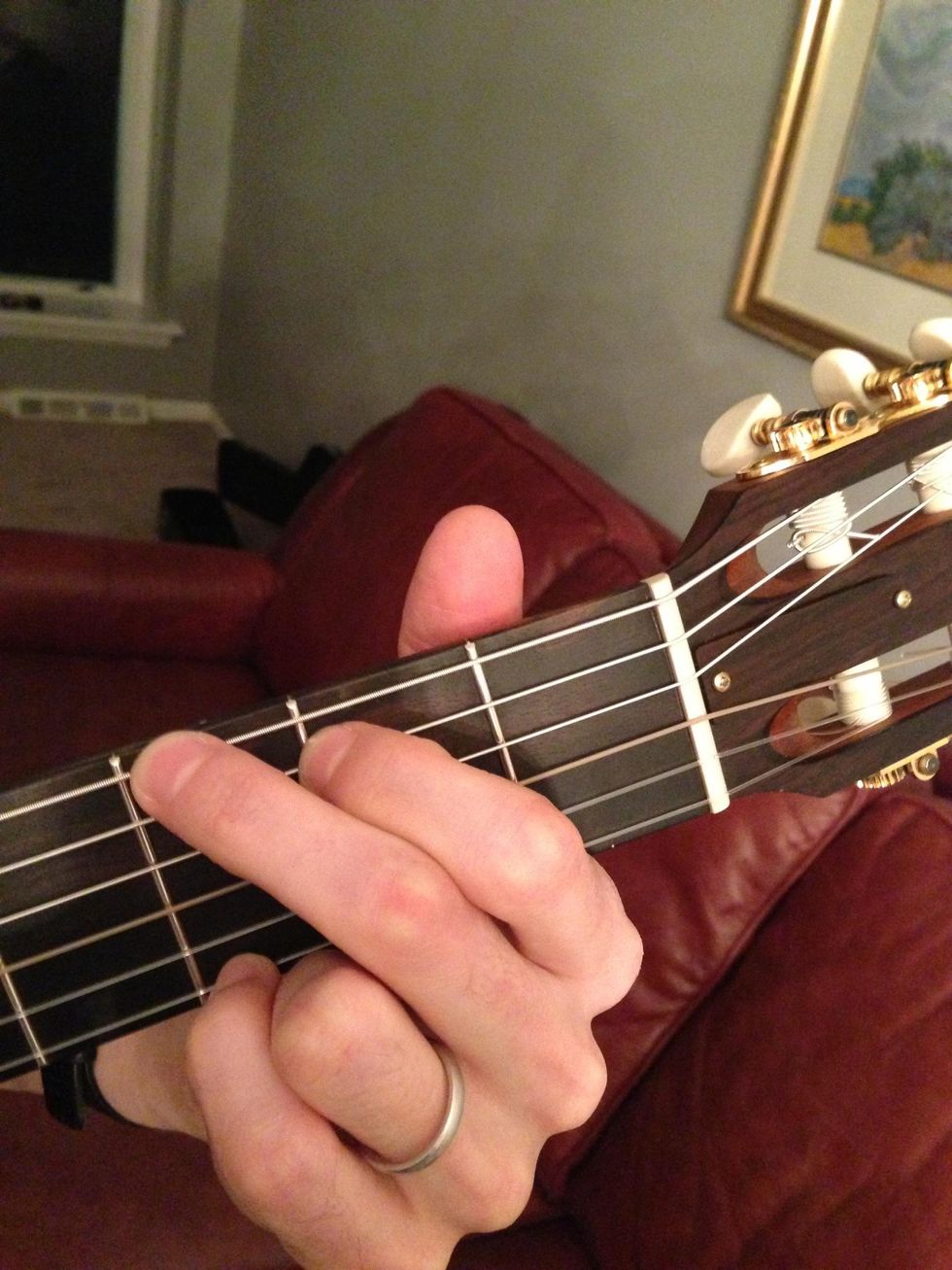 G - third fret E stringB - second fret A stringG - third fret E stringG chord notes: low - G - B - D - G - B - G - high