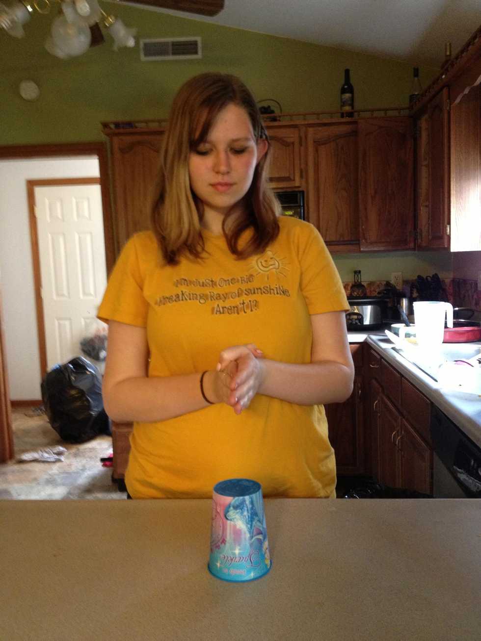 Use your hands to either hit the counter or the top of the cup 3 times