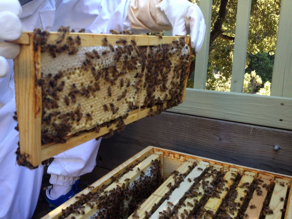 Carefully remove the top cover. Don't smash any worker bees or drones if possible