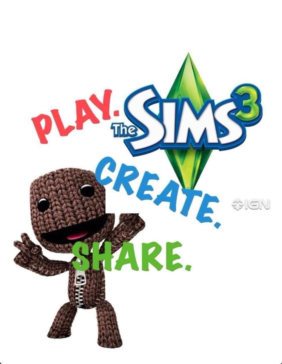 A great example of a Play. Create. Share. game is THE SIMS™ by MAXIS. The sims is a LIFE SIMULATION game. The SIMS of the game are like humans that have to do various things in their lives.