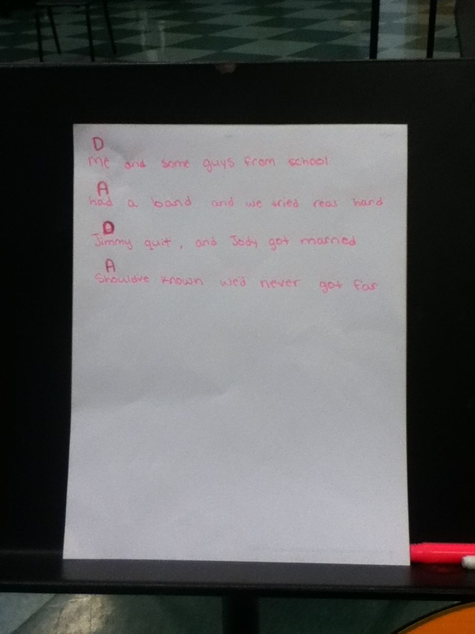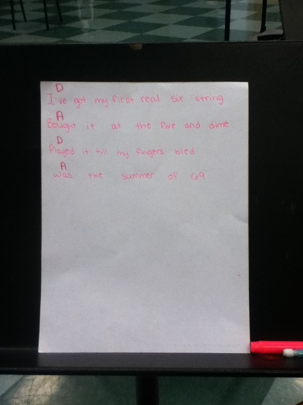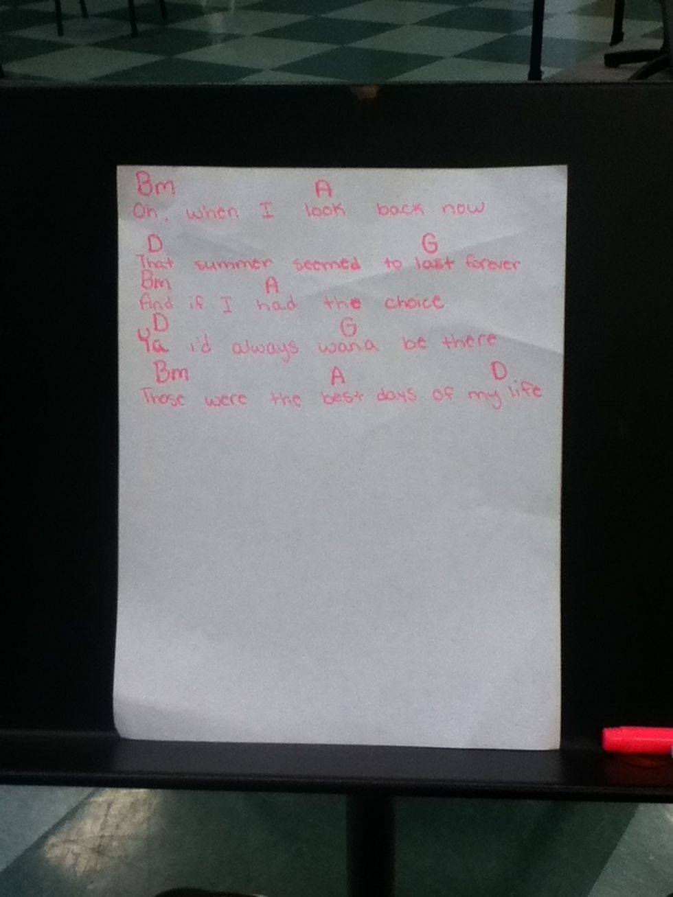 You are going to then play the D chord for the words "Thad summer seemed to.." And then play the A chord for the words "..last forever"