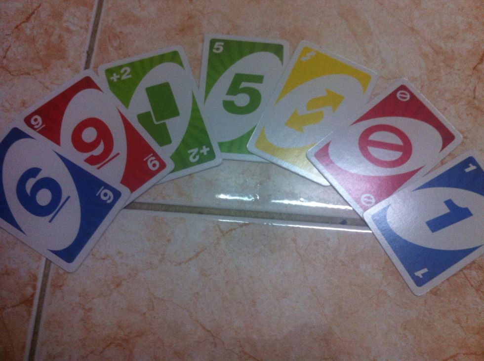 Player to the left of the dealer plays first. Play passes to the left of the start. When it's your turn, you must match the same number or colour with the before player.