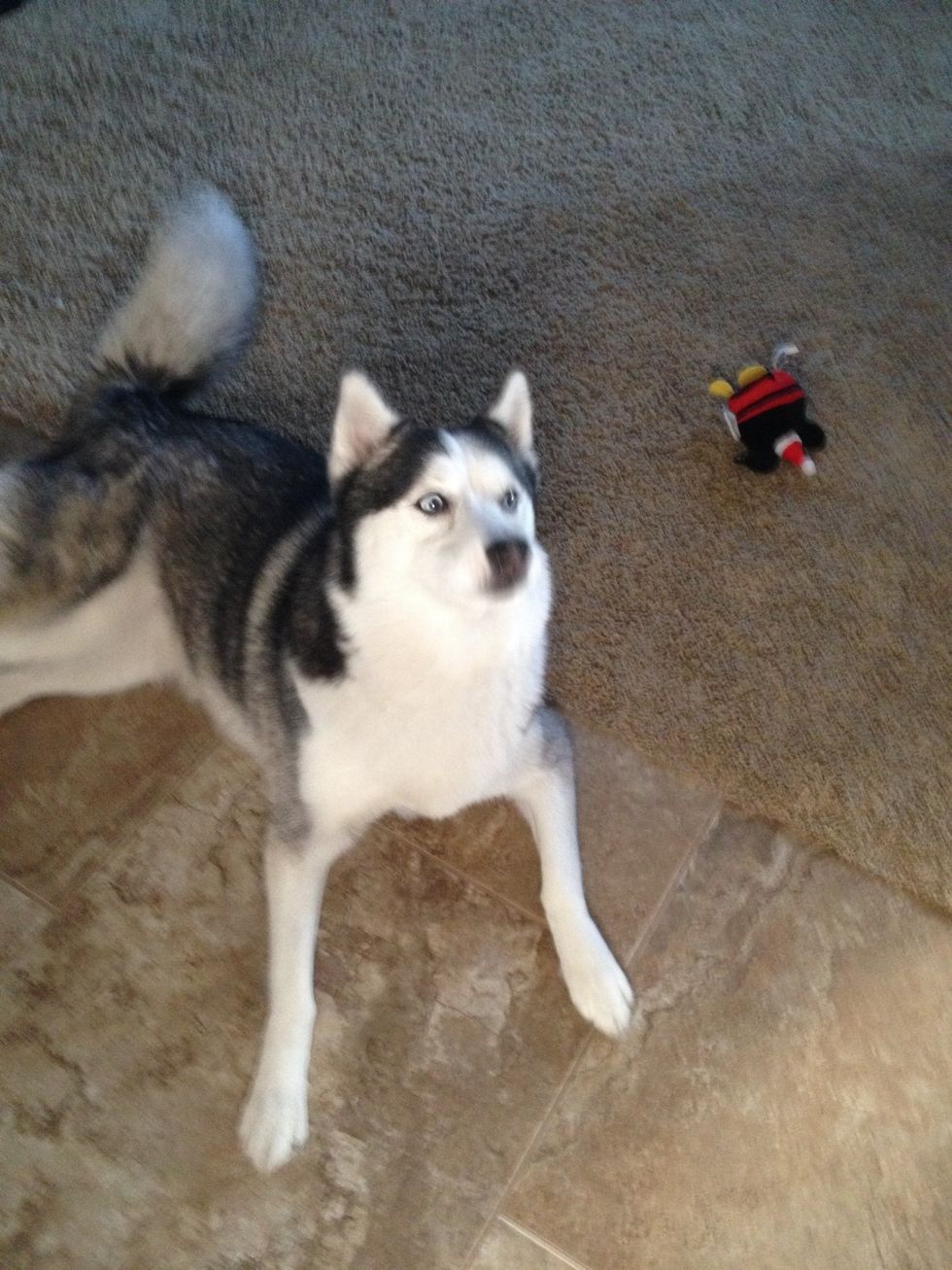 If you have a small laser shine that on the floor. They like to chase the colored dot. *don't shine in their eyes!!!*