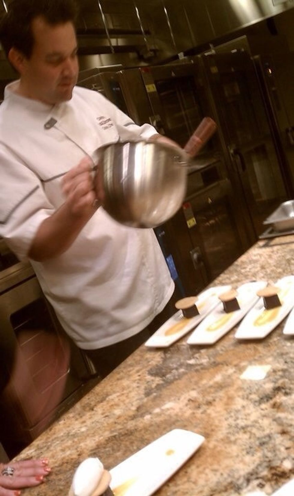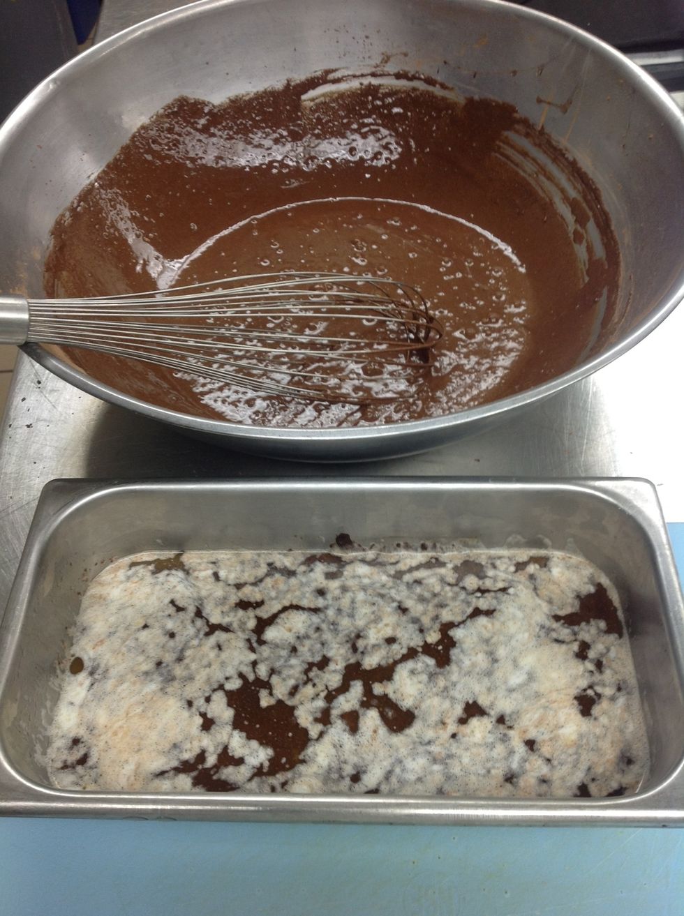 Temper and stir chocolate mixture into cocoa mixture.