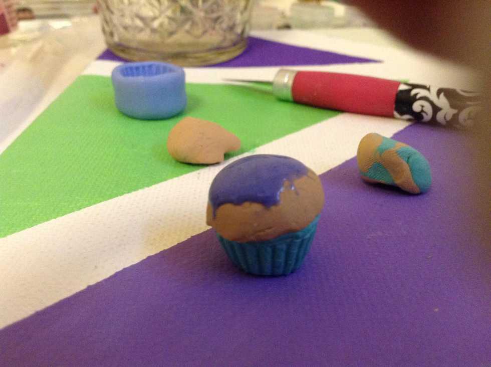 Get clay Sorry for blurry picRoll in ballPush into moldCut off excessTan clayMake into ballCut one third off I had to cut a little morePut on top of moldGet icing. I might make a guide on thisFrost itTake out of mold and done!!! :)