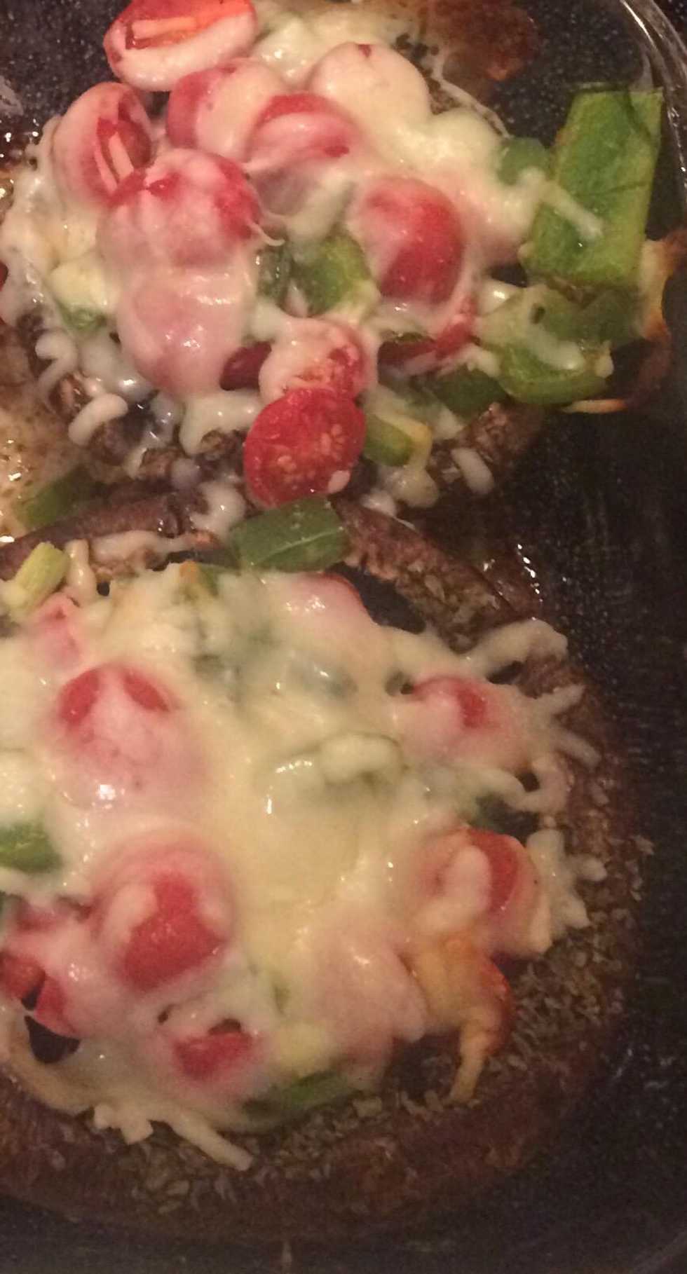 Then add mozeralla to cover top of caps, bake another 10 mins
