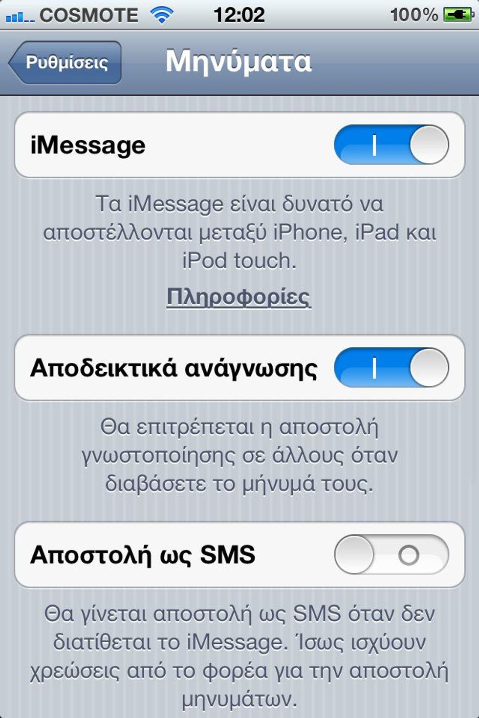 Τέλος απενεργοποιείς την "Αποστολή ως SMS"