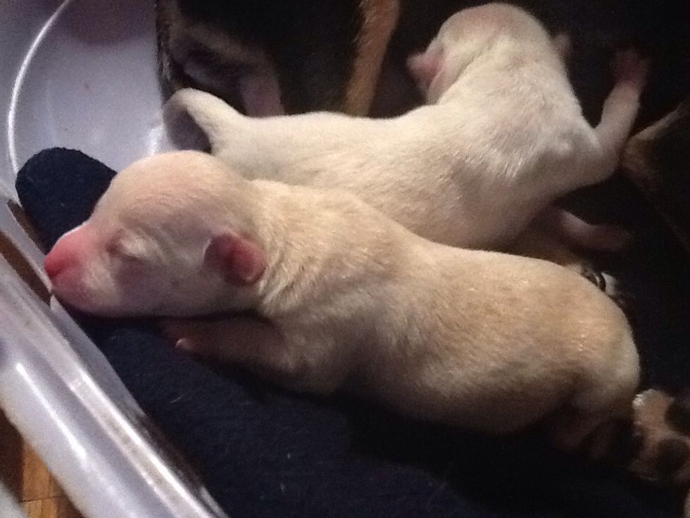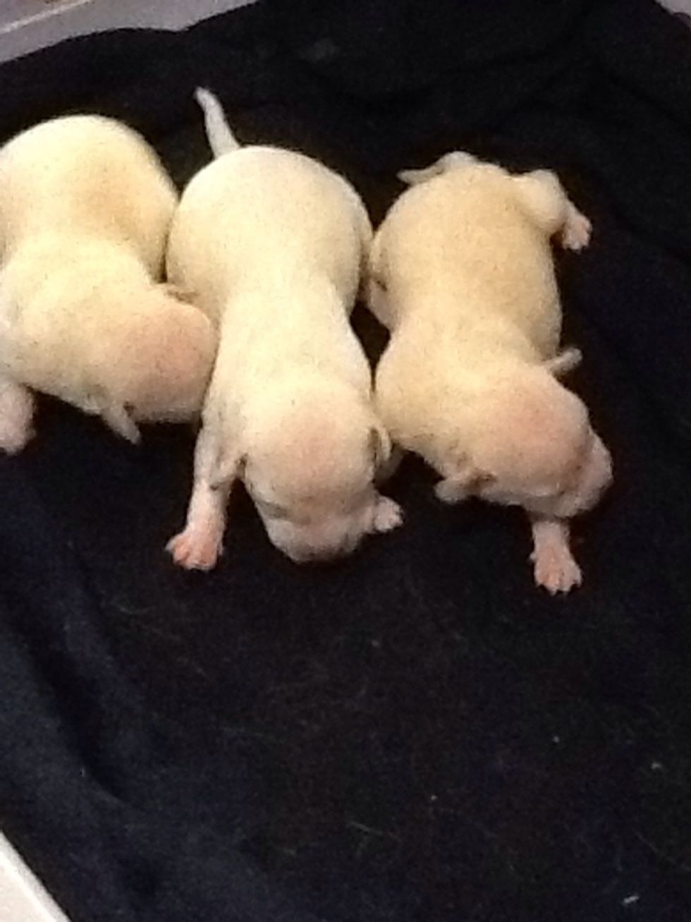 She had four puppies, but of course, there was 1 that didn't make it. 😔