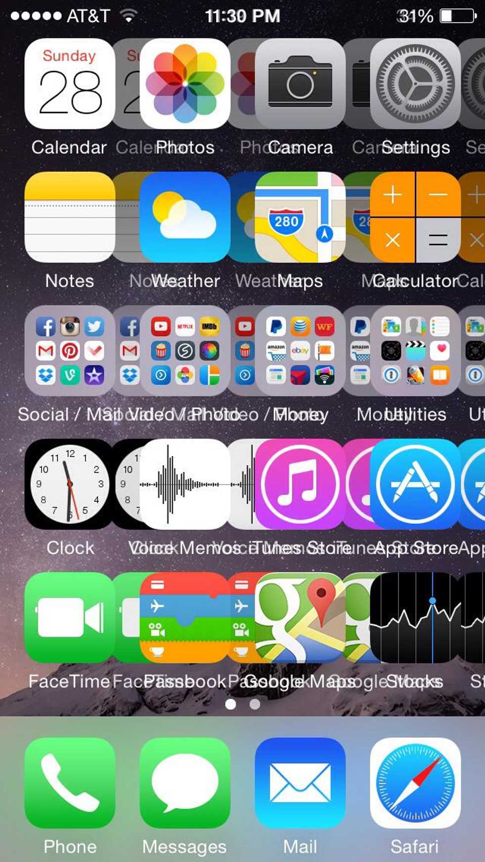 Your background should now look like this. Once again, move the home icons, but this time slightly further than the previous photo and take your final screenshot. (Set this photo as your wallpaper)