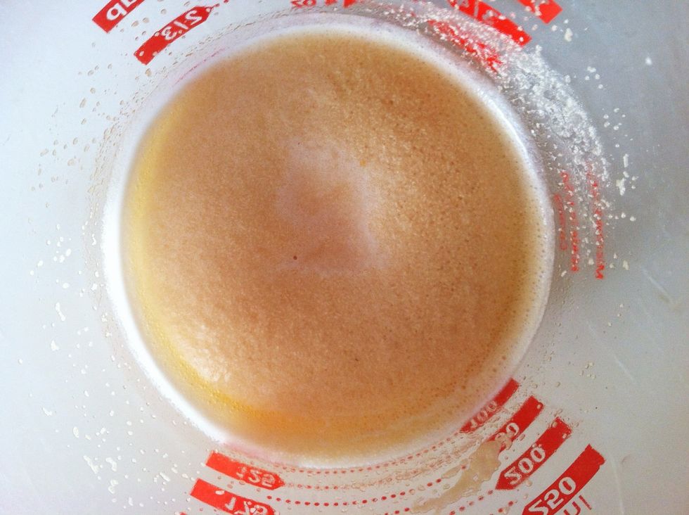 Sprinkle yeast over liquid. Stir to mix. Leave for 5 minutes in a warm area, or place the container with the yeast in some warm water, or in a slightly warm oven. Note: keep temp between 100-110.