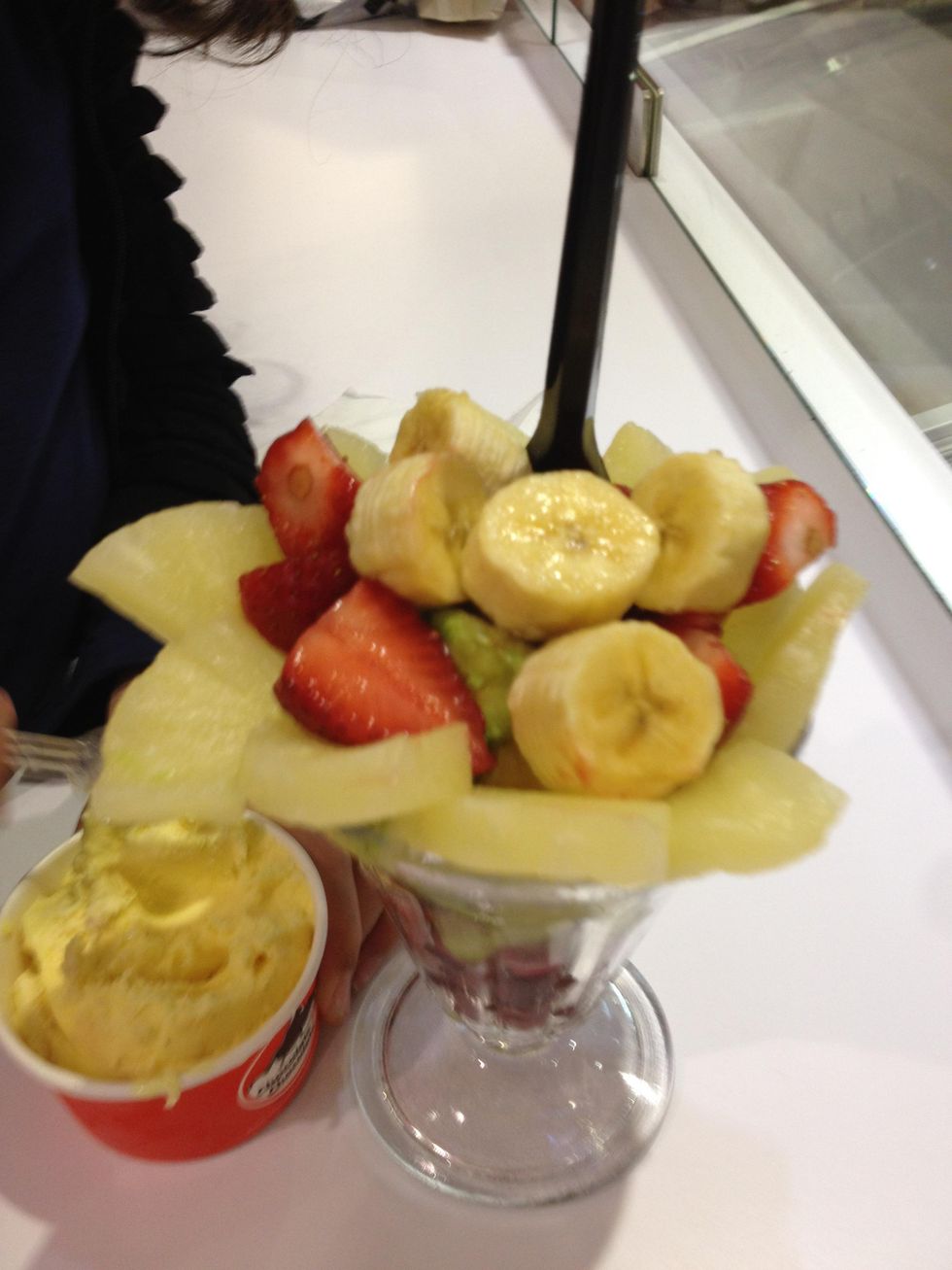 1. cut your fruits into small pieces. 2. put them in a large bowl. 3. add a teaspoon of lemon.