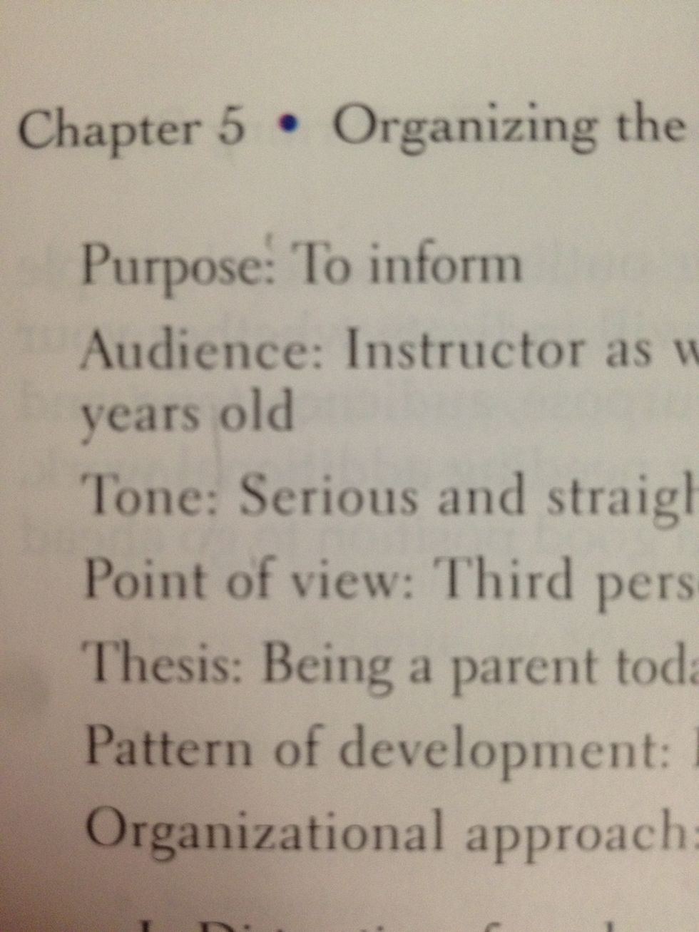Write your purpose, audience, tone, point of view, and thesis of the top of your outlining page