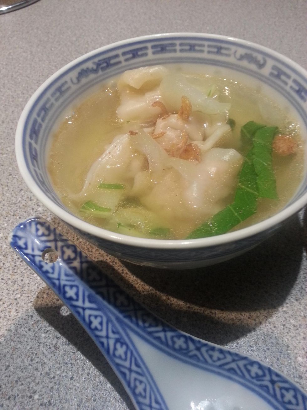in a small bowl mix plain flour with some water to help seal the wantons. Place the pork mixture in the center of the wanton skin.