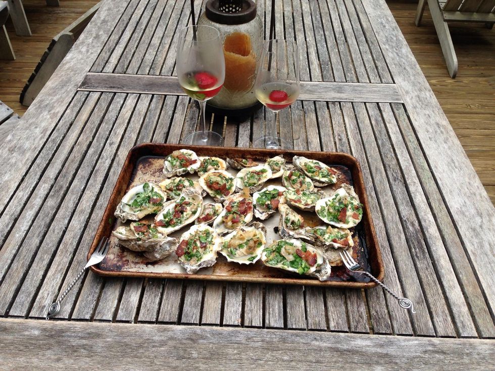 Grilled Apalachicola Oysters topped with spinach, bacon, jalapeño and asiago cheese. Prep time:30-45 minutes. Serves 2