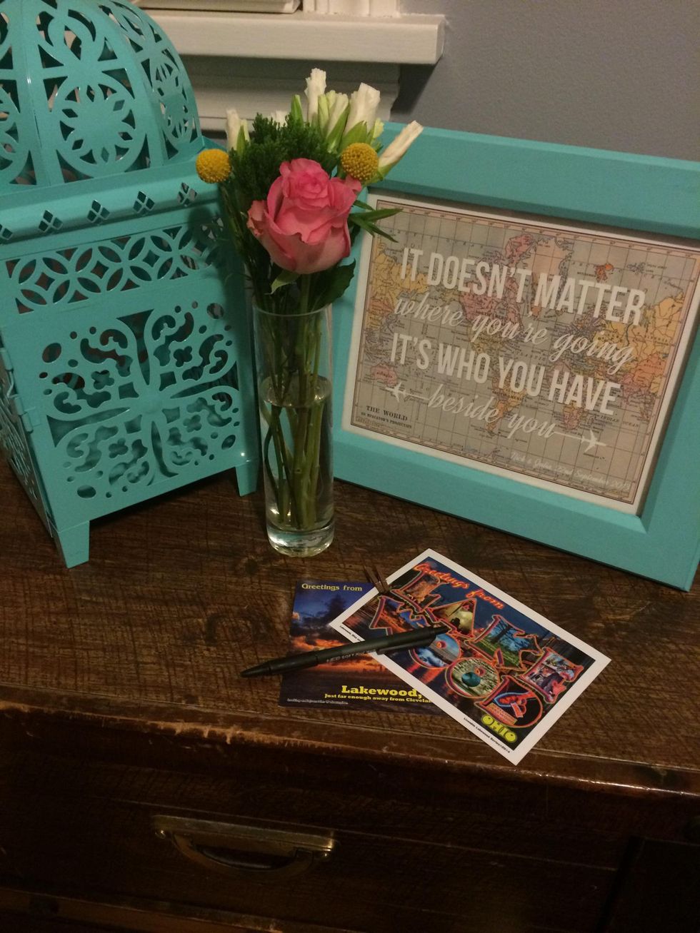 Include a pen or pencil and something to write on. I found these cute postcards for free at a local store!