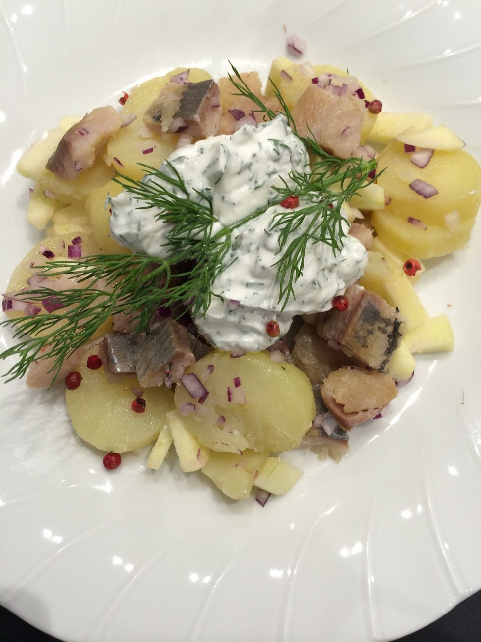 Prepare the sauce cream or yogurt with the dill. Don't add salt because the herrings already have salt