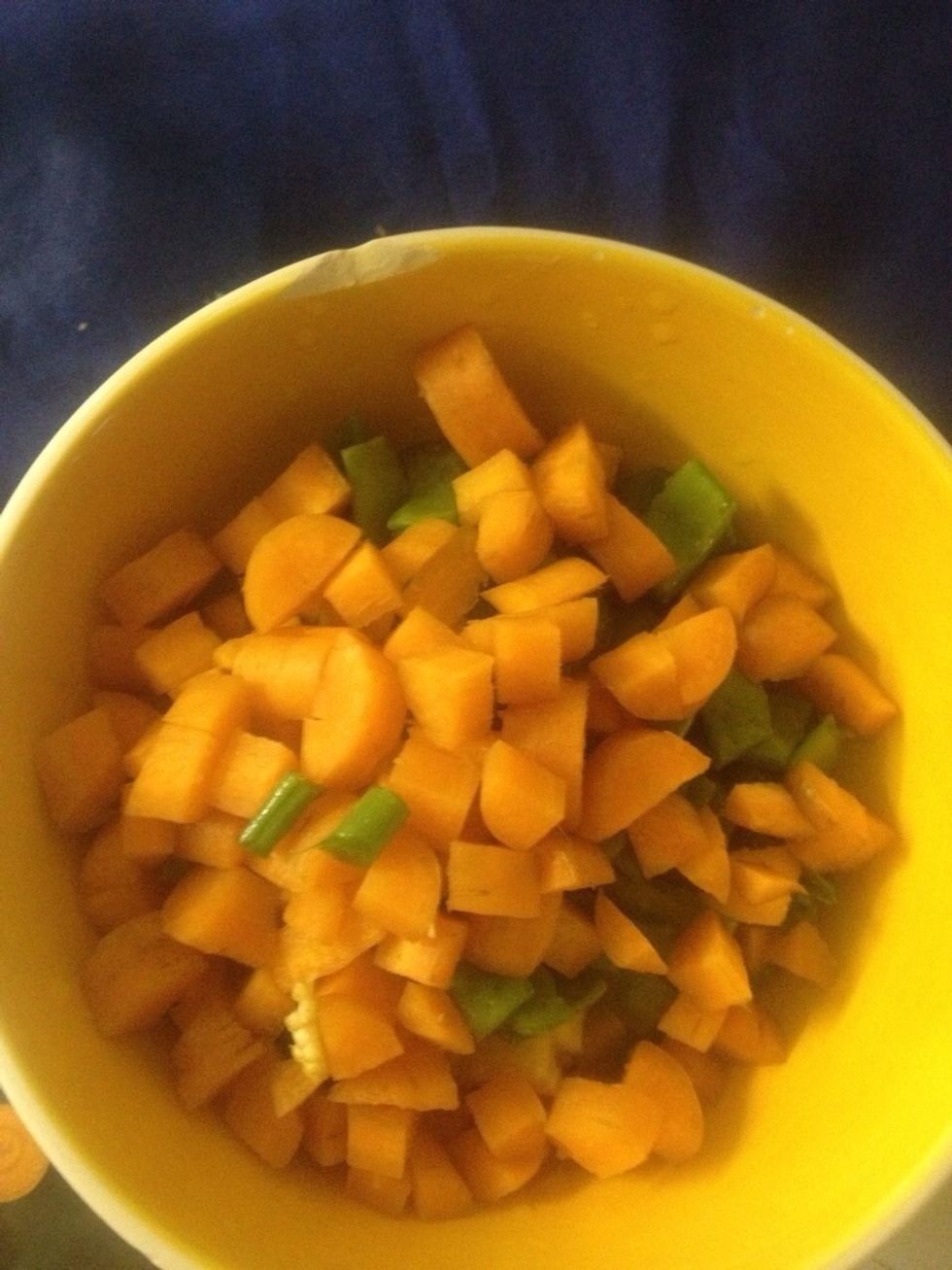 350gms of mixed vegetables like carrots, baby corn, short beans, long beans, any other vegetable as you like.