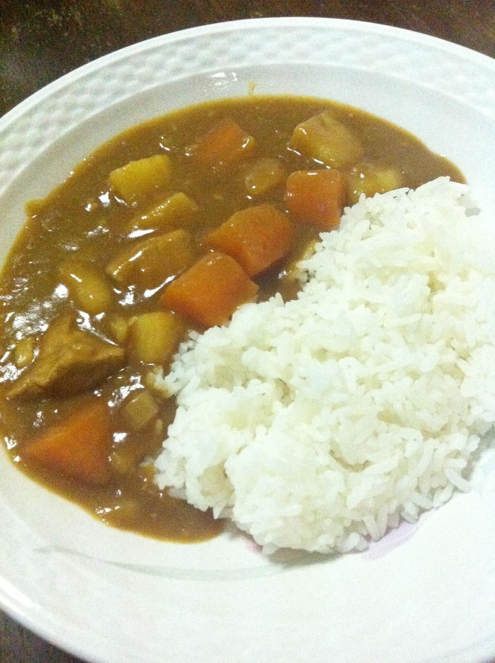 Add in curry roux. Stir and stew with low fire for 5mins. Stir time to time to prevent mixture from burning.