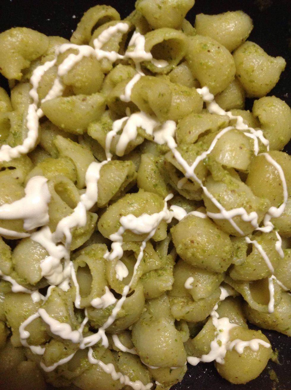 I cooked the pasta with water drain the water if excess then mix that ground paste in it..