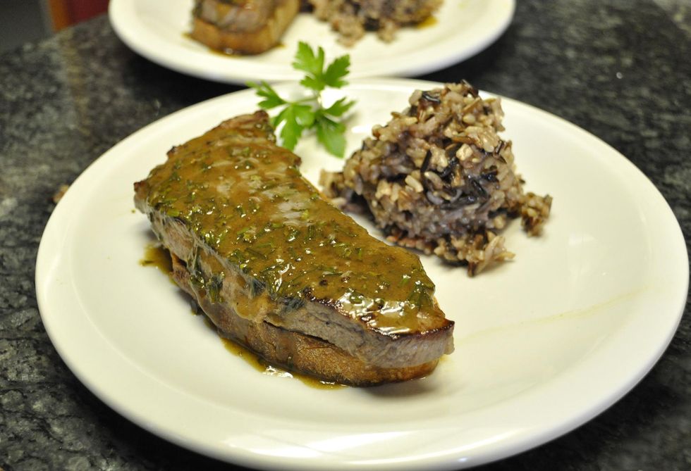 Sauté steaks until light brown on both sides.