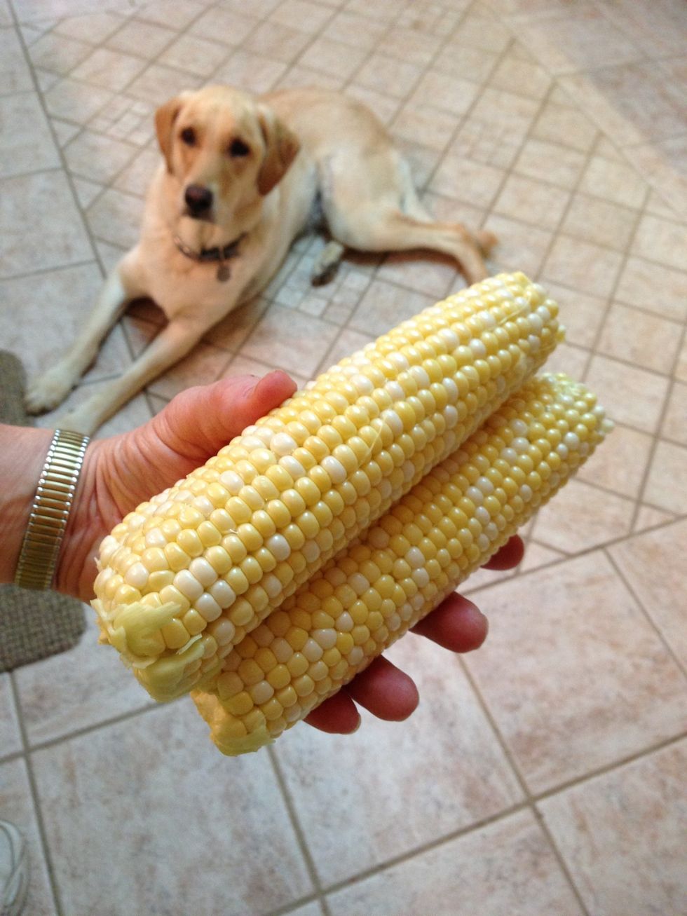 This bi-color corn, fresh from the garden, with butter and salt tastes wonderful!