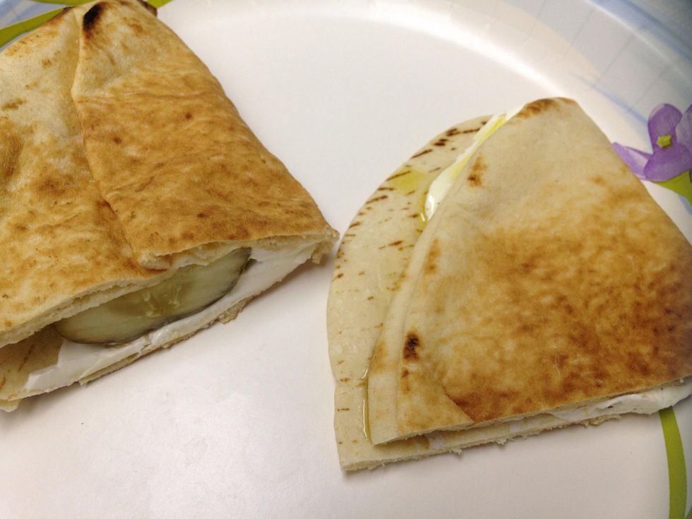 Optionally if you don't have the preferred seasonings or cucumbers, a slice of dill pickle ontop of the lebni is a great substitute.