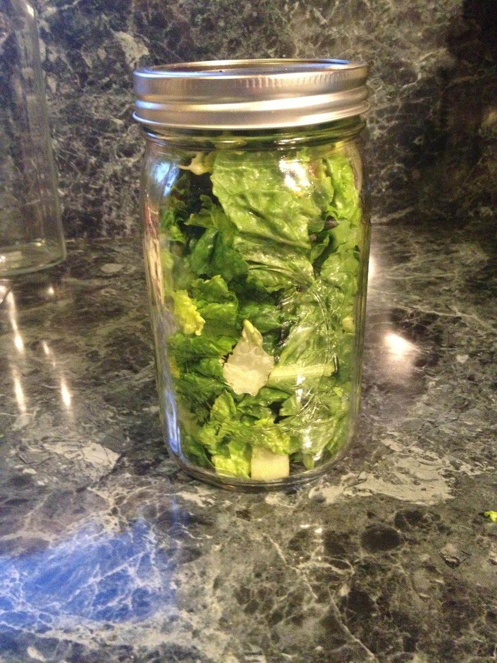 When the romaine is dry stuff It in a jar and cover it with a lid. You can fit a lot in a quart size jar it's amazing. That's all easy does it.
