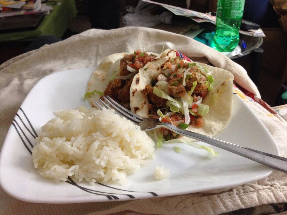 Layer on a flour tortilla chicken strips, with salsa & shredded lettuce. I served it with some jasmine rice. Nice light meal!