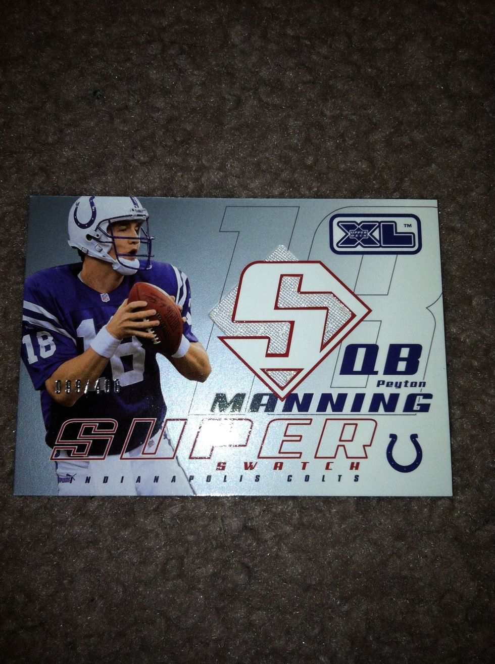 Flip it back over to determine if it has an additional title. This one does. The top right shows "XL" and the bottom of the card says "Super Swatch". We now have "2002 Upper Deck XL Super Swatch".