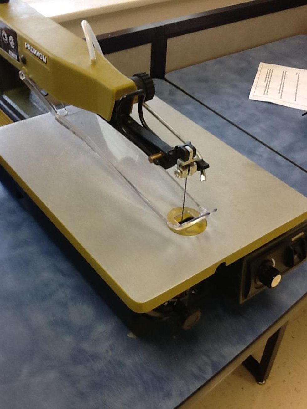 Use the 1 of the 4 Scroll saws in the classroom to cut out your fins. Make sure you have taken the safety quiz before using the saw.
