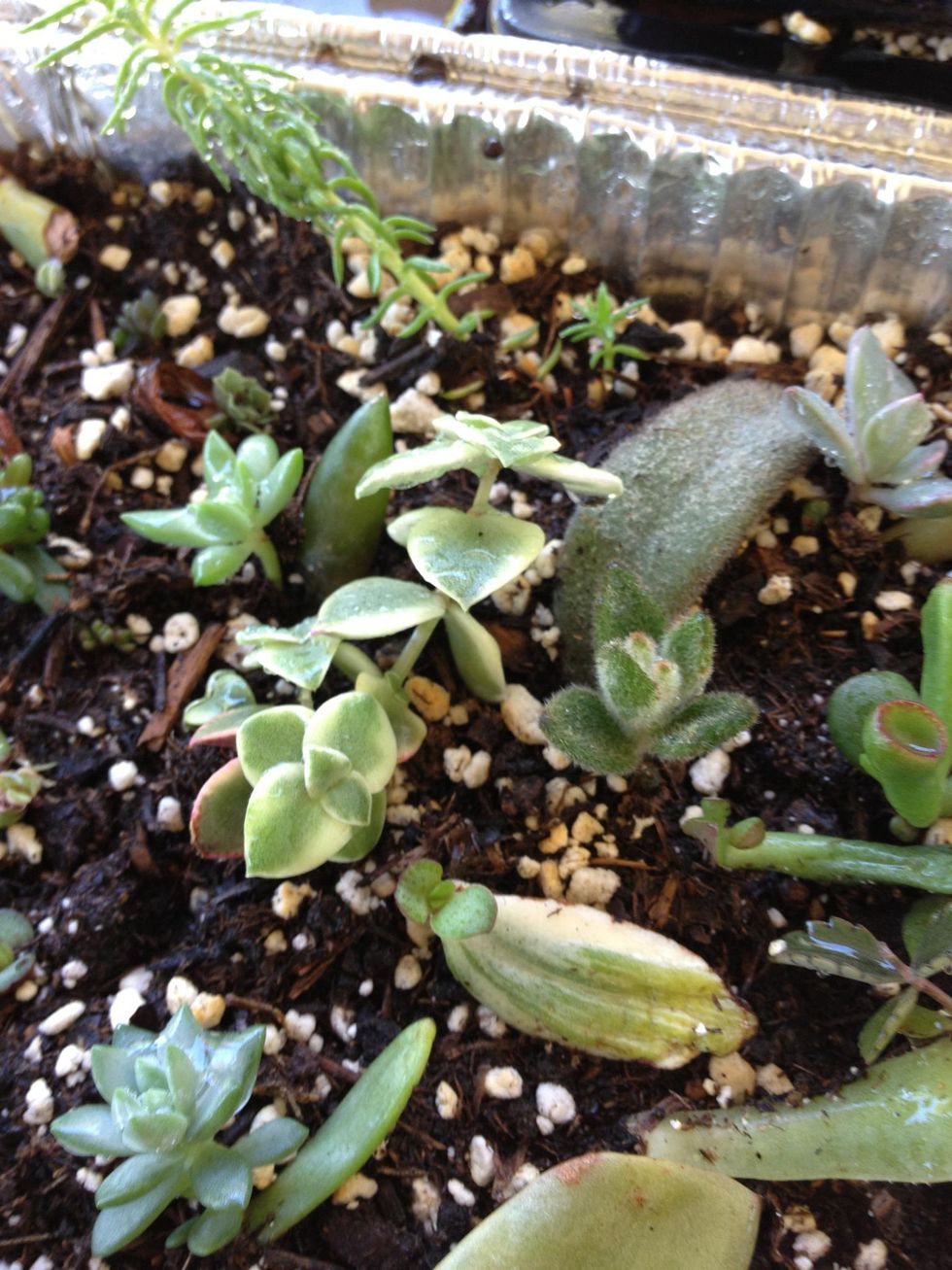Gather your supplies. I use a 50/50 mix of Cacti Potting Soil and Perlite. You can use any container to start the babies. I prefer using aluminum cake pans.