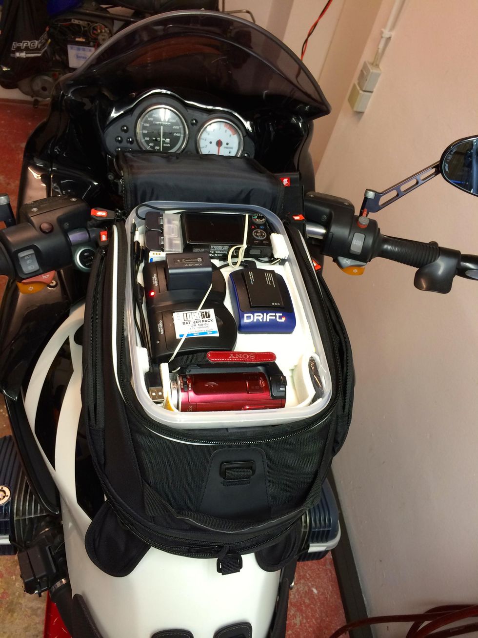 This is the box after, housing my photo & video cameras, chargers for them and my Drift Ghost-S action cam, 3 batteries per device, a spare USB-port and a 12Ah USB battery below for charging on the go
