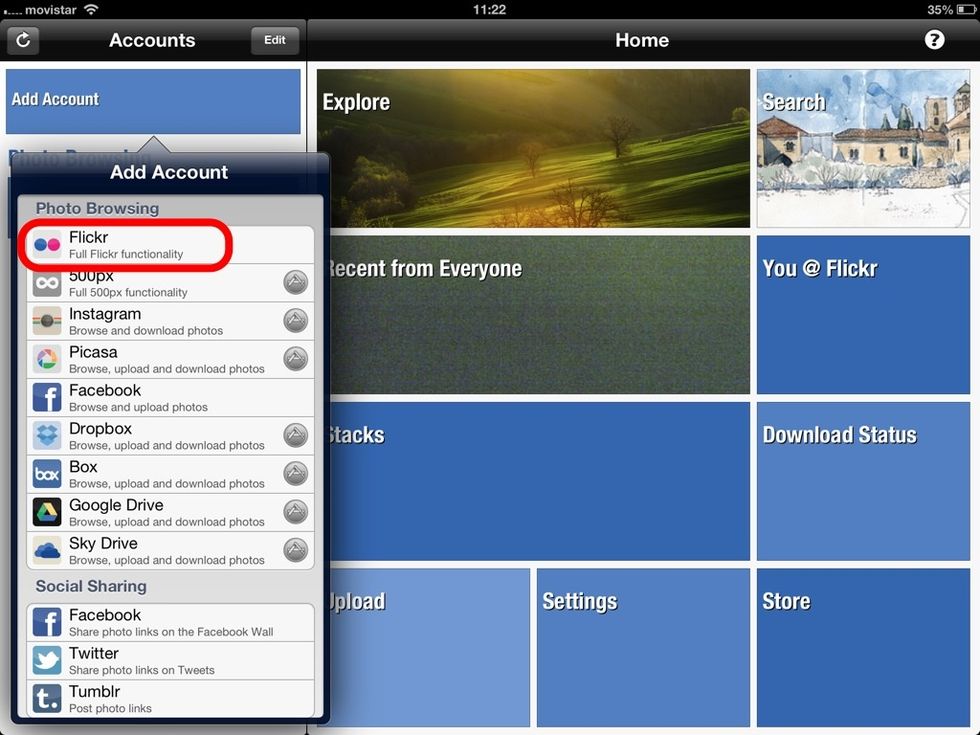 Tenim dues apps per pujar les fotos de l'iPad a Flickr. La pròpia de Flickr (gratuïta) i la FlickStackr (1,79€). Veiem pas a pas com emprar totes dues...