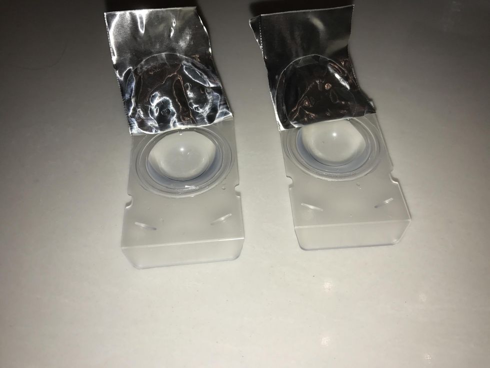 If you have daily contacts you can just through them away, but if not place the left contact in your left contact holder and your right in the right, be sure to put contact solution in the container.