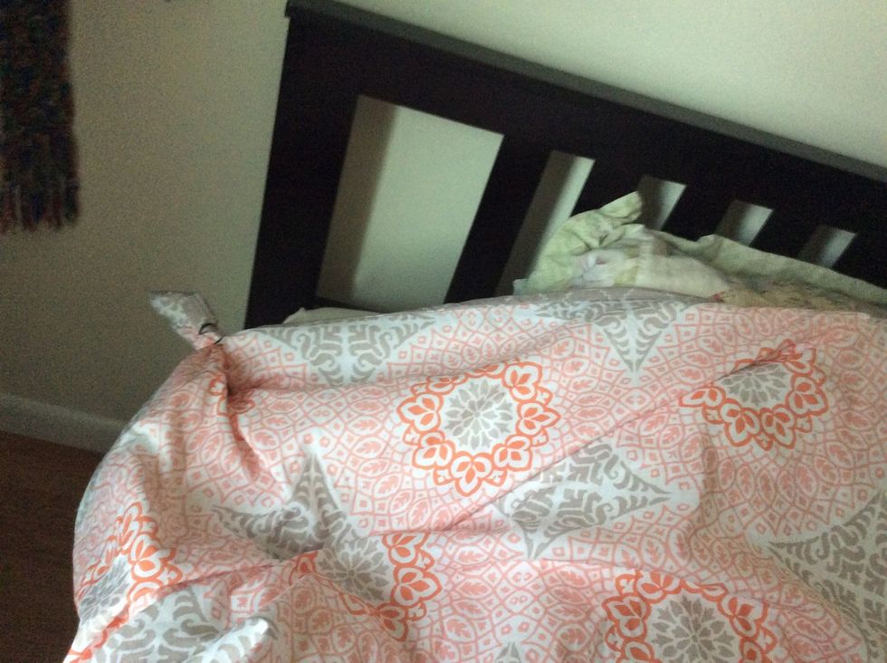 Lay the duvet cover on the bed as it will be in the end, with the buttons at the foot of the bed