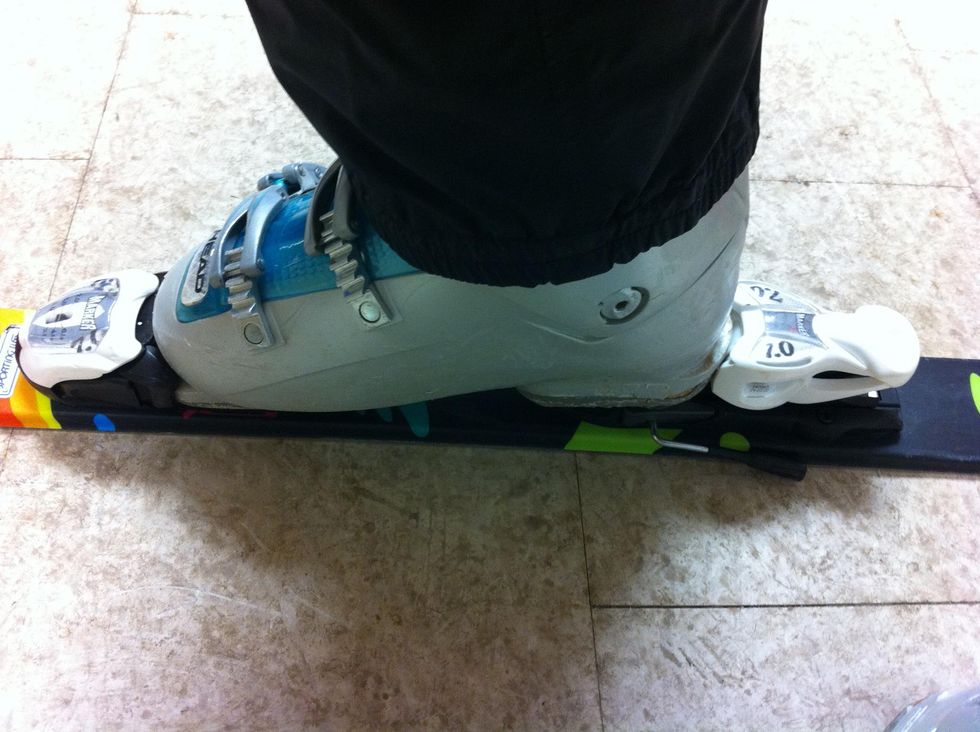Make sure your binding at the rare is flat. Most of the ski binding is flat when its ready to be worn.