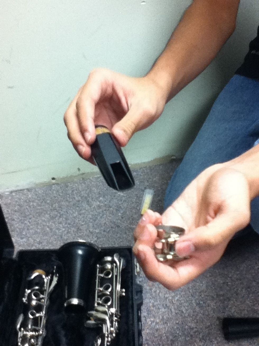 finaly put the legature on the reed and mouth piece. make sure to screw the legature.